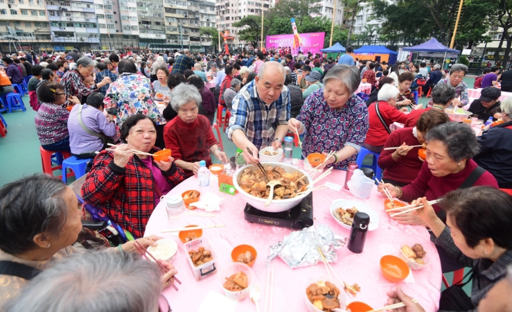 【香港商報網訊】記者何加祺報道:為向長者表達敬老關愛的信息,深水埔街坊福利事務促進會昨日在深水埗舉行「深水埔·深水情·國際長者日2019盆菜宴」,邀請了2000多人一同參與。活動除了有盆菜宴外,亦同時舉行健康飲食講座、歌唱表演等,與各位長者一同歡度佳節。