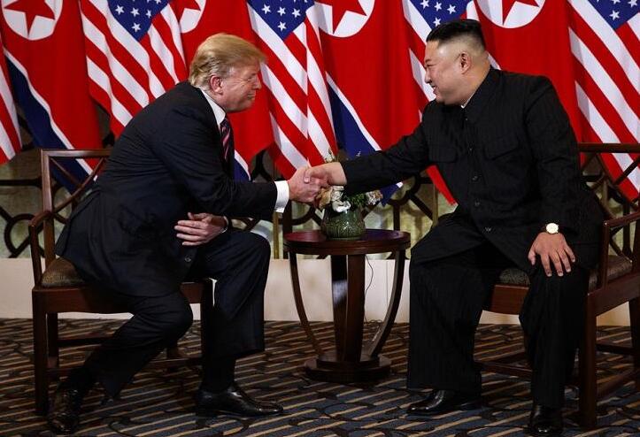 当地时间2019年2月27日,越南河内,美国总统特朗普与朝鲜最高领导人金正恩在河内索菲特传奇大都市酒店举行会晤,两人握手。