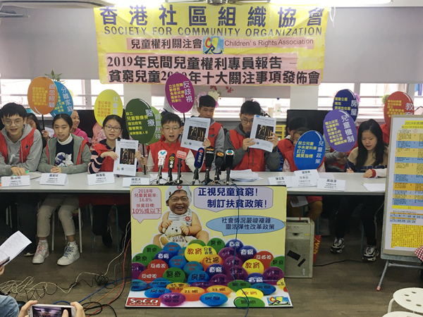 社區組織協會和兒童權利關注會昨發表2019 年民間兒童權利報告,指目前貧窮兒童比率達兩成三。
