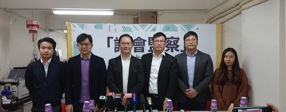 民建聯成立「議會監察」監察新一屆區議會運作,左起:劉天正、楊開永、陳學鋒、楊學明、呂鴻賓、張嘉恩一同出席記者會。記者林駿強攝