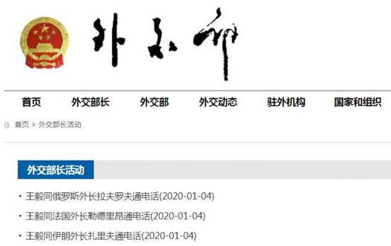 而外交部网站的“外交部长活动”一栏中,仅1月4日当天,王毅外长便就中东局势同三个国家的外长通了电话。
