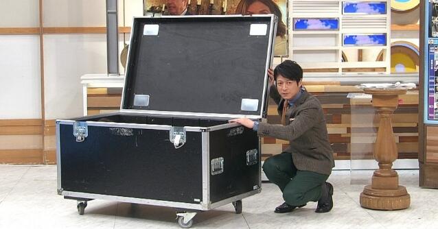 日本电视台展示和戈恩藏身用大箱子同样尺寸的箱子(富士电视台)