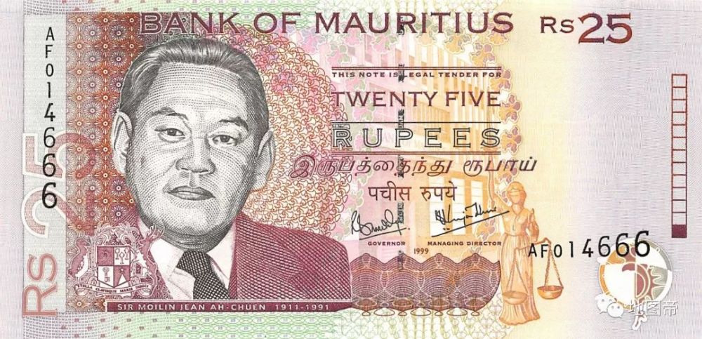 毛里求斯曾有个财政部长叫朱梅麟,祖籍是广东梅州,他的头像印在毛里求斯25卢比货币上。