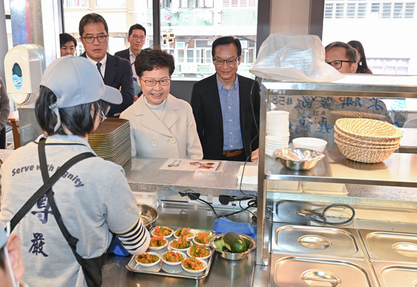 林鄭聽取市建局人員介紹項目的背景及如何保存唐樓群原有的建築設計特色,亦同時給予歷史建築物新生命和用途,融入社群。她又參觀了在內經營的社會企業食肆,聽取創辦人介紹該企業如何為弱勢及殘疾人士提供訓練和就業機會,並與學員交流。她讚賞該企業的工作,希望企業上下繼續努力,發揮弱勢及殘疾人士的潛能,增強他們的自信和求職能力。