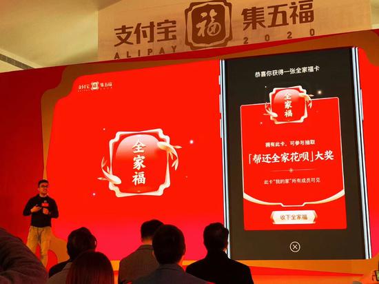 【香港商报网讯】昨日,2020年支付宝新春集五福发布会在北京召开。据支付宝集五福产品经理冠华介绍,2020年支付宝扫福最新玩法——“全家福·帮还全家花呗”即将上线,这是在去年“花花卡”基础上的一个升级,从帮个人还全年花呗账单升级到还全家人的账单。用户可以在支付宝上组建自己的“家庭”,通过扫福就有机会赢取“帮还全家花呗”大奖。