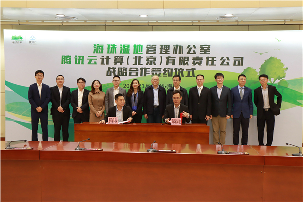1月10日,海珠湿地管理办公室与腾讯云计算(北京)有限责任公司在海珠区政府签订战略合作框架协议,启动“智慧湿地”项目,以信息技术助力海珠湿地全面保护和可持续发展,推动各级政府及社会各界参与生态保护事业,在对内管理运营,对外展示生态文明建设成就等领域创建交流融合平台。