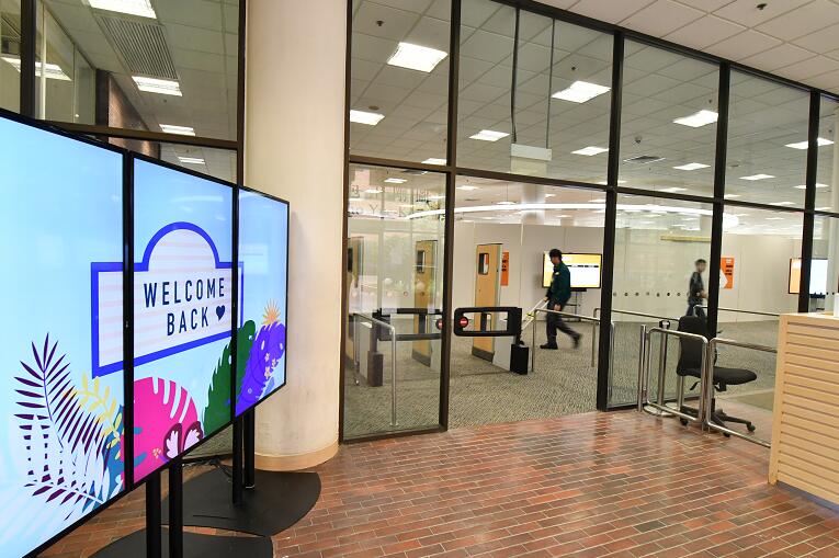 现场所见,校園現時開放三個出入口,全部均加裝出入閘機,教職員及學生須持有效證件才可進入,公眾人士則需登記。