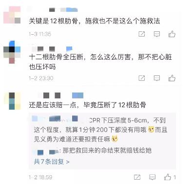 但也有网友质疑,施救过程中导致12根肋骨断裂,是否存在不当?