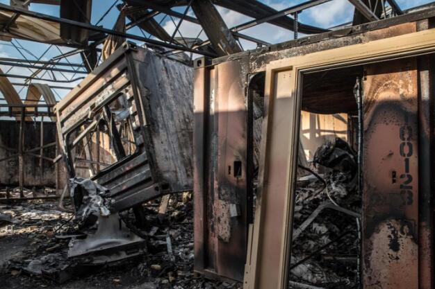 美军士兵来到阿萨德基地遭袭地点,满地都是残骸。