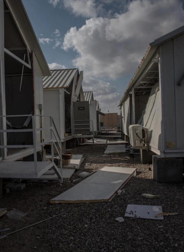 直到这周一,士兵们走在阿萨德基地的空地上时仍然穿着防弹衣。在一些地方,比如食堂,椅子都被倒扣在桌子上,因为大家被要求领取食物后就各自散去。