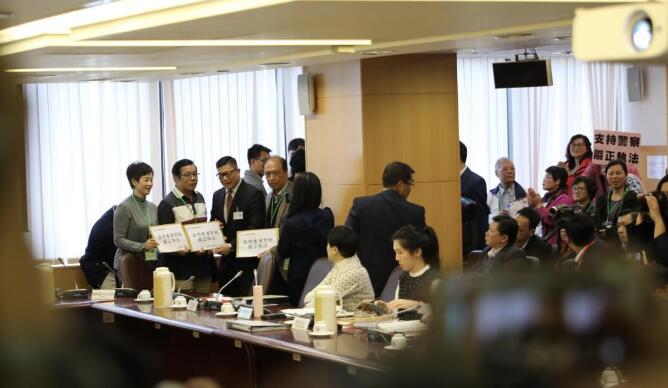 現場消息指,十多名社民連成員到舉行會議的中環海港政府大樓外示威,反對警方加薪,又要求獨立調查警隊。另一邊,大樓外亦有數十名支持警隊人士集會,他們高舉國旗及區旗,高叫支持警隊的口號,雙方互相對罵。
