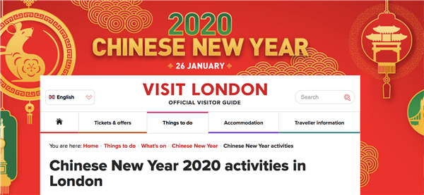 伦敦旅游局的网页也变成了喜庆的中国红