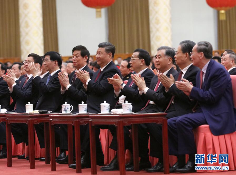 党和国家领导人李克强、栗战书、汪洋、王沪宁、赵乐际、韩正、王岐山等出席团拜会,李克强主持。