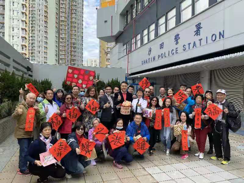 【香港商报网讯】大年初二,新界地區新社聯、民建聯、婦委會等各界近200多名市民分別前往附近警署慰問警隊,並送上生果籃以及自行製作的慰問卡、揮春等,為警隊送上節日的祝福,表達支持警隊嚴正执行的愿望,共同展望2020香港回歸正軌再創輝煌!