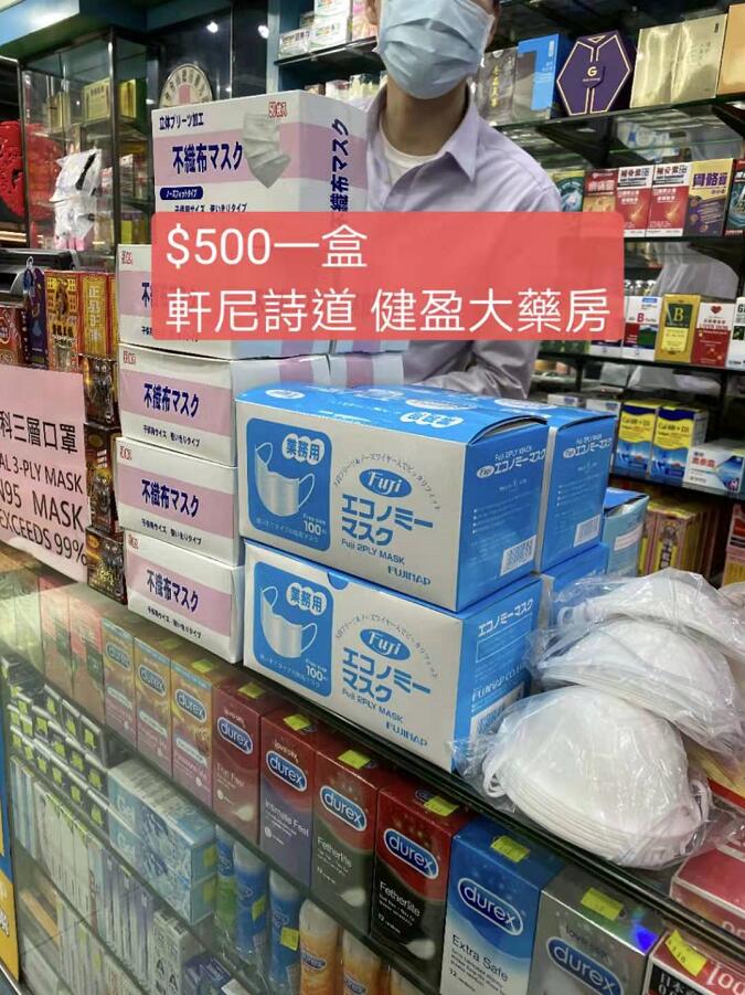 滿大街都是戴口罩的人,但口罩卻不好買。劉小姐去了灣仔一家藥房,看到有大堆的口罩,日本進口的要500塊一盒,咬咬牙也買了,但打開後很多朋友都說不像真的,直接退了。