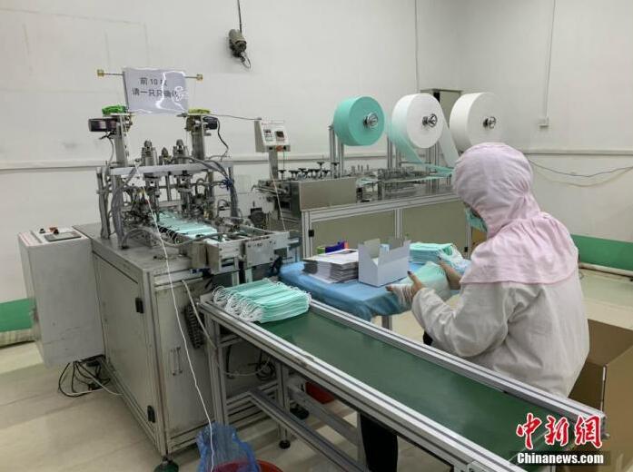 1月28日,位于河北省石家庄市的河北汇康日用品有限公司正式复工,全力生产,支援新型冠状病毒感染肺炎疫情防控工作。目前,该公司拥有20条生产线,可日产防护口罩80万个。中新社发