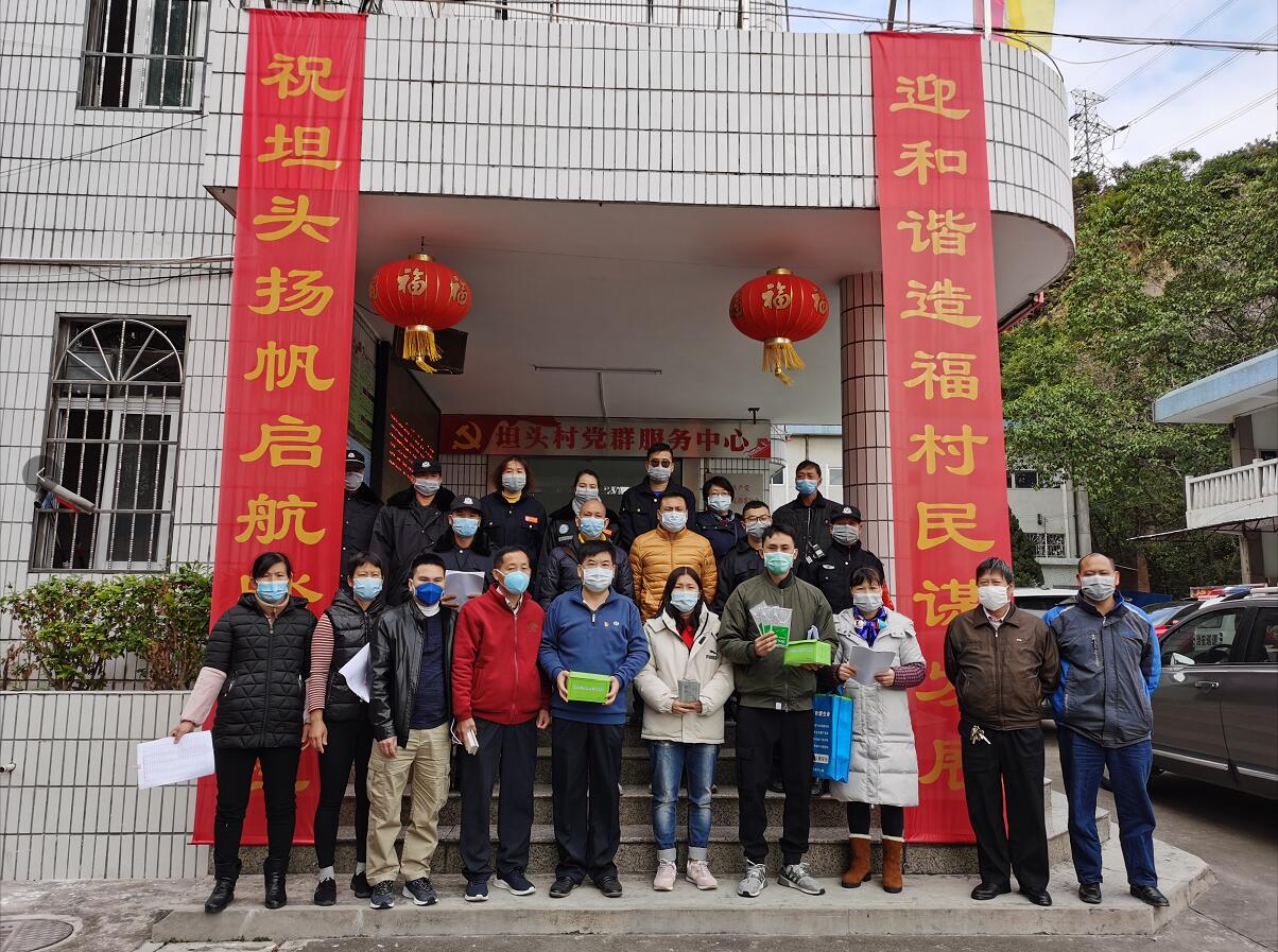 据统计,该支部已为本村村民、湖北籍和其他外地人员发放疫情防控设备口罩6000多个、消毒水32桶、湿纸巾80包,快餐152盒。目前已有 110人次参加为村民防控服务,该服务队分为10个小组进行轮换在4个自然村路口为出入的村民进行体温检测、进行防控宣传,并带头为本村和居住本村的群众出入村口时检测体温。对出入本村人员逐一进行详细登记,进行全面掌握。此外,还为村民采购感应式体温计9个、一批消毒湿巾和一次性手套,印发《致坦头村民一封信》、防控常识和媒体有关宣传防控通知资料1200份,在村内和村口悬挂防控新型病毒宣传标语横幅34条。