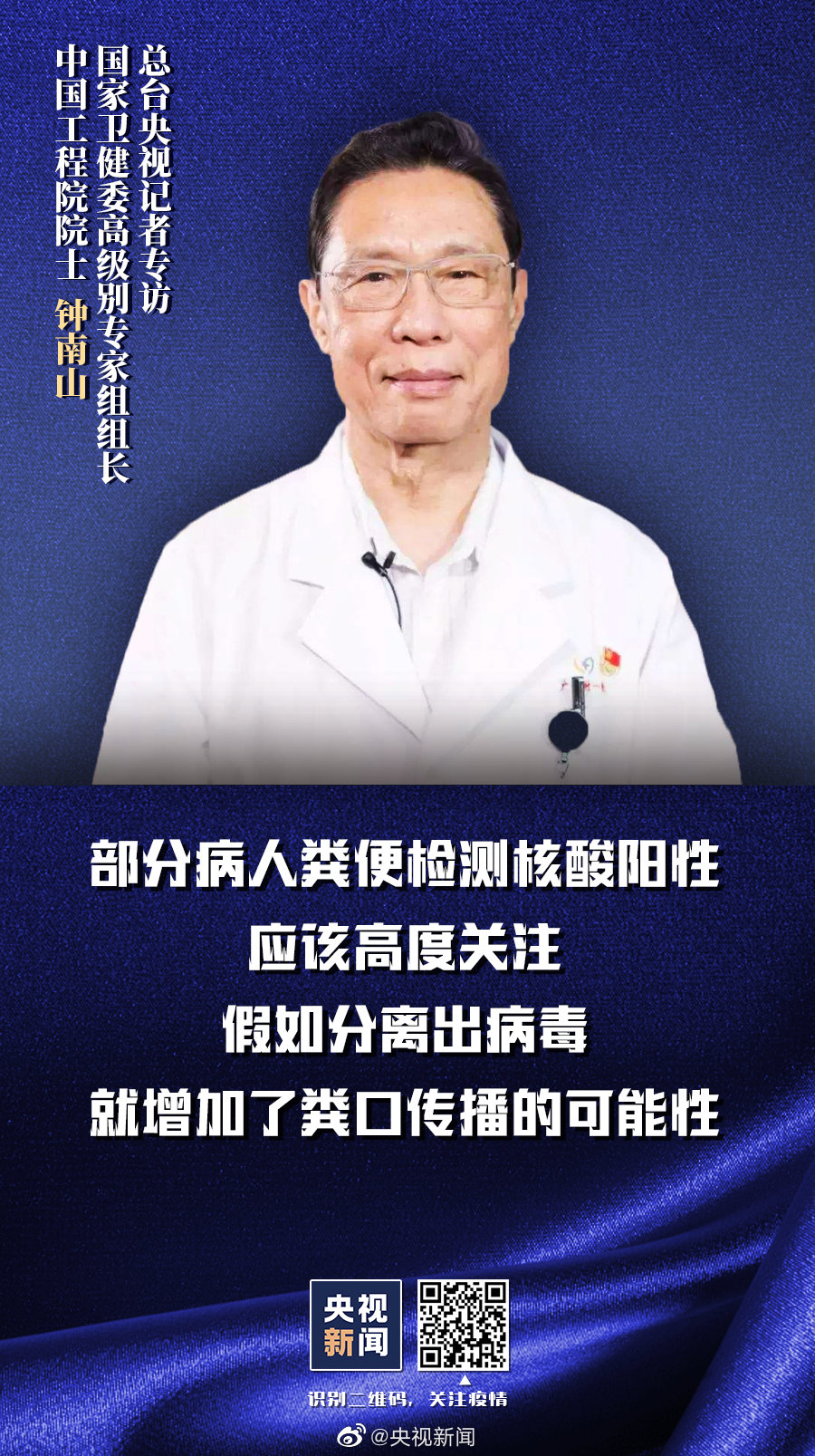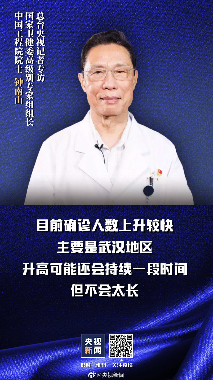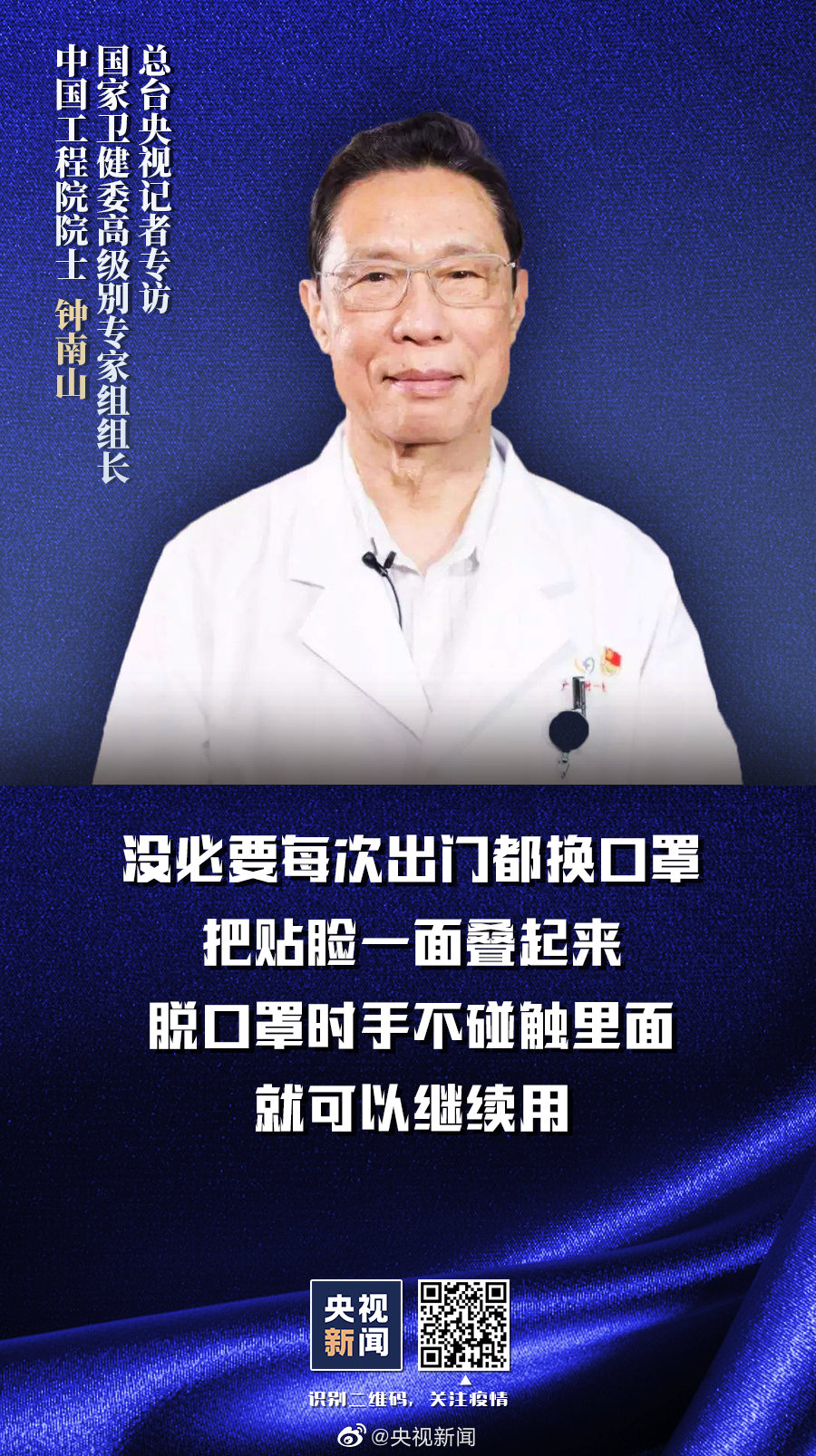 鍾南山:①部分病人粪便检测核酸阳性,应高度关注;②火神山医院的作用是,缓解现有定点医院的压力;③确诊人数或仍将持续升高,但不会太长;④没必要每次出门都换口罩,脱口罩时,手不触碰里面,就可以继续用……更多戳图↓↓