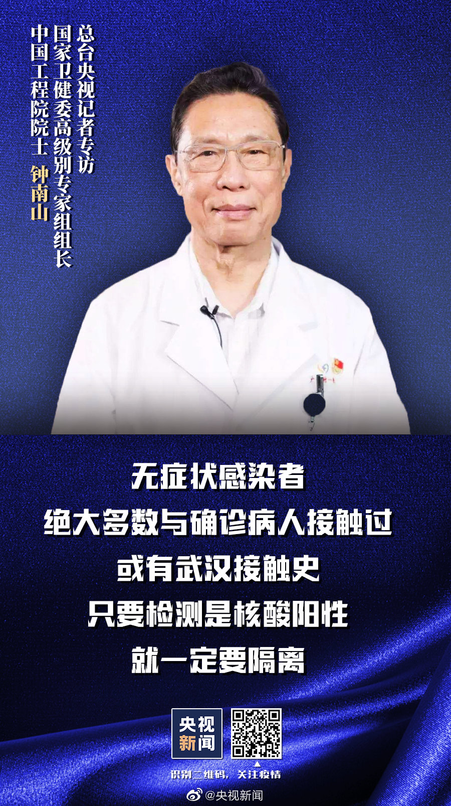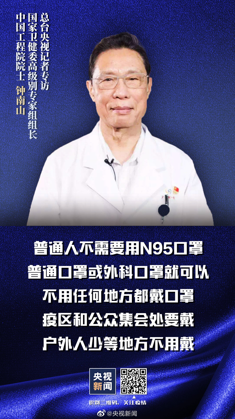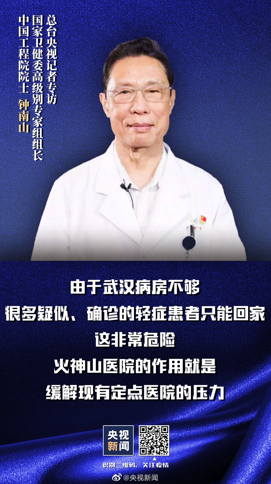 鍾南山:①部分病人粪便检测核酸阳性,应高度关注;②火神山医院的作用是,缓解现有定点医院的压力;③确诊人数或仍将持续升高,但不会太长;④没必要每次出门都换口罩,脱口罩时,手不触碰里面,就可以继续用……更多戳图↓↓