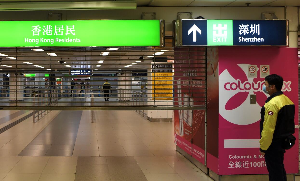 港鐵職員將連接羅湖口岸與羅湖鐵路站的通道關 閉。 中通社