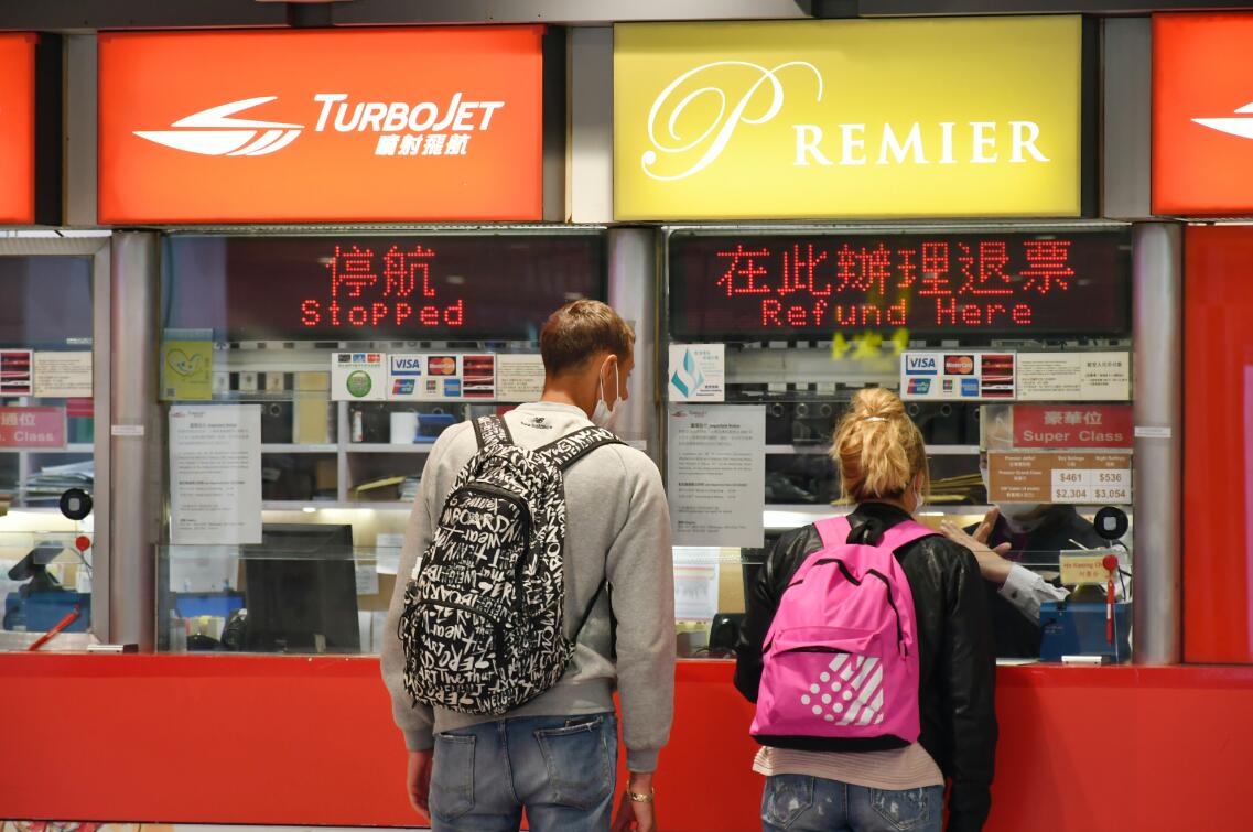 封關後的港澳碼頭,有遊客查詢退票手續。 記者 馮瀚文攝