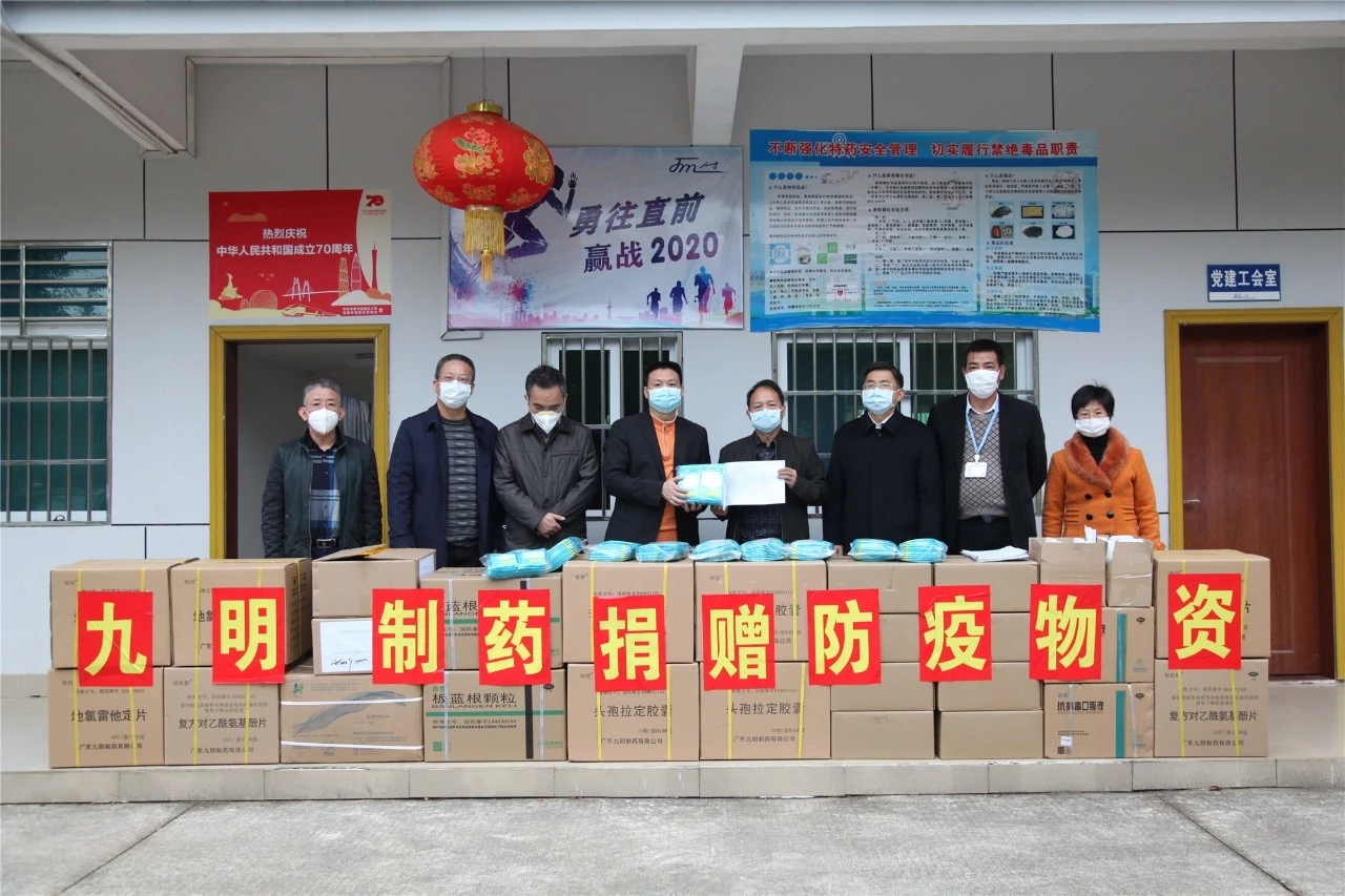 【香港商報网訊】記者余麗齡 通訊員鄧燕琴 李曉報道:4日下午,河源高新區企業——廣東九明製藥有限公司(以下簡稱「九明製藥」)向河源市新型冠狀病毒感染的肺炎疫情防控工作指揮部捐贈了一批含口罩在內的防疫醫療物資,履行社會責任,為河源打贏這場疫情防控阻擊戰貢獻高新區企業力量。省市工信部門、河源高新區負責人參加活動。九明製藥捐贈的這批防疫醫療物資,包含了一批企業通過各方渠道採購的普通醫用外科口罩,一批企業自主生產的N95口罩,一批企業生產的抗過敏、治感冒藥品,一批採購的抗病毒口服液、板藍根、消毒用品等,捐贈總價值10餘萬元。