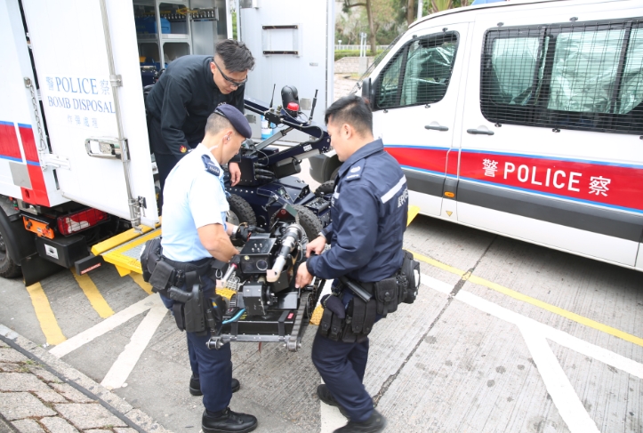 爆炸品處理課即場引爆可疑紙盒。記者 區天海攝
