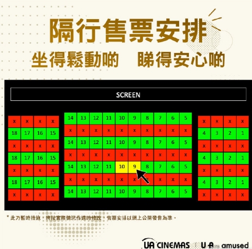 【香港商報網訊】娛藝(UA)院線公布,全線UA戲院及K11ArtHouse由下周一起,每場放映會以隔行形式售票,減低觀眾密度,更會為每位入場顧客量度體溫。