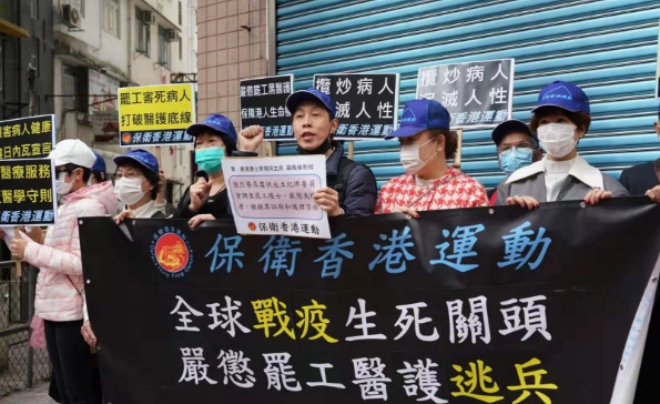 【香港商報網訊】 今天,“保衛香港運動”主辦“嚴懲罷工醫護逃兵”集會,強烈要求盡快成立紀律委員會嚴肅調查罷工的所有醫生護士,要求撤銷其牌照和專業護理資格。