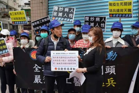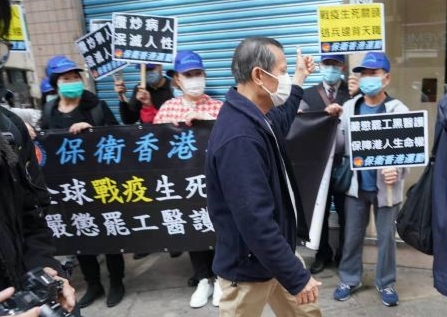 上午10時許,“保衛香港運動”來到香港護士管理局及香港醫務委員會,投訴罷工的醫生和護士。