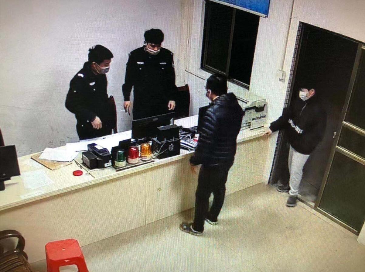 2月5日晚8时许,惠东县公安局城南派出所辅警李亮民正与同事在值晚班,突然,一位戴口罩的中年男人走来,身后还跟了个年约8、9岁的小男生。李亮民赶紧起身,询问他们有什么事情需要求助。