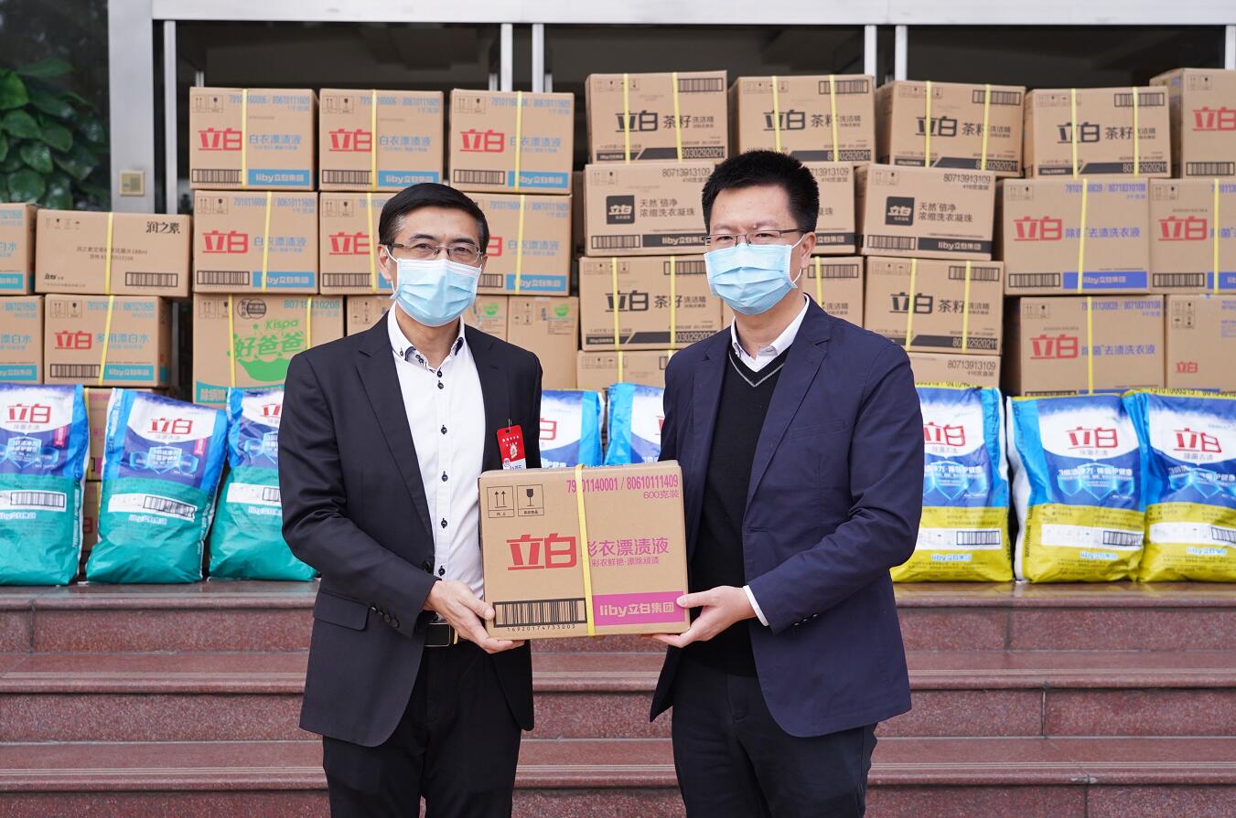 【香港商报网讯】记者黄裕勇、通讯员徐诗韵报道:2月6日下午,共青团广州市委员会、广州立白企业集团、广州市青少年发展基金会主办的“众粤同心 抗击疫情”——医疗防护资金捐赠仪式在广州立白(番禺)有限公司举行,立白集团向广州医科大学附属第一医院捐赠了立白除菌洗衣液,立白漂白水、威王除菌包、威王大红瓶84消毒液等对新型冠状病毒有灭活作用的防疫物资171箱,用于医院医疗器械、医疗用品、医疗场所抗菌消毒工作,为前线作战的医护人员提供安全的工作环境。