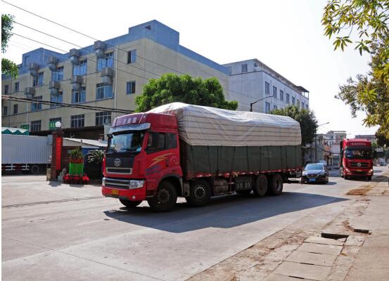 1月31日14时许,三大货车生产防护用品的设备和原材料顺利运回花都