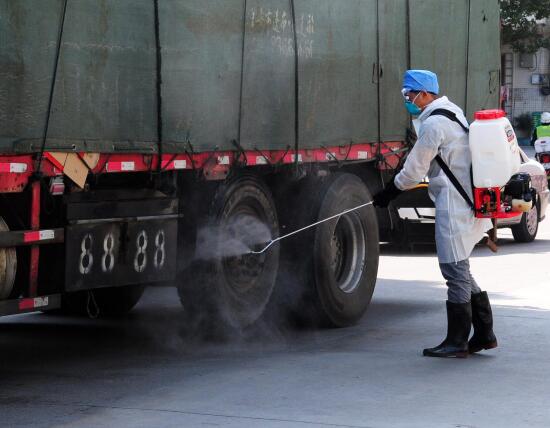 返程后,工作人员对运输车辆进行彻底消毒