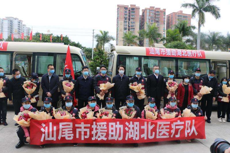 此次,惠州市组织了首批医疗队启程驰援湖北,该医疗队由惠州市第三人民医院、市第二妇幼保健院、惠城区中医医院、小金口人民医院四个单位共15名医护人员组成,队员来自消化科、神经内科、内科及护理等专业,其中医生5名,护士10名。惠州市第三人民医院徐永辉主任医师任队长,王科同志任临时党支部书记。