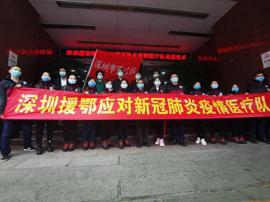 深圳市委書記王偉中、市長陳如桂出席出征儀式。王偉中表示,希望隊員發揚特區精神完成使命,同時注意自我保護,更好地救治患者。此外,王偉中坦言,深圳會是隊員們最堅強的後盾,在為隊員提供充足的防護物資的同時,也將照顧好他們的家人,讓隊員無後顧之憂。