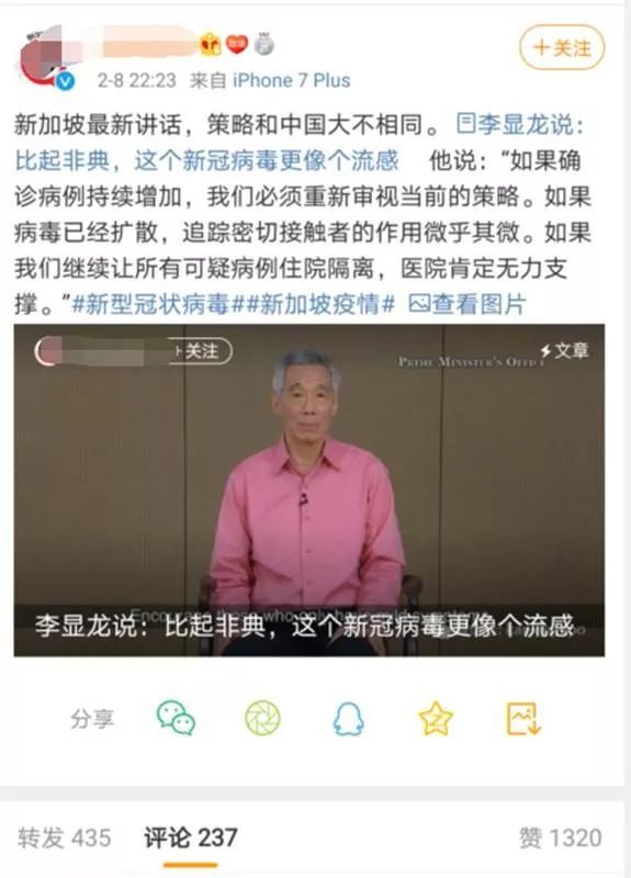 之后,有自媒体账号总结称,新加坡采取了与中国完全不同的防疫策略,认为此次疫情更像是流感,不可能把所有病例收到医院,因为医院承受不了。