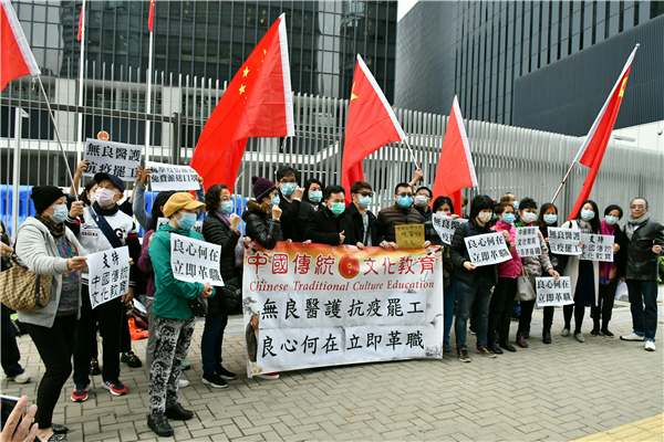 該批市民屬於「中國傳統文化教育」團體。他們認為在現時全世界抗疫的情況下,罷工是以犧牲病人的安危來威脅政府,不符合醫護應有的守則和品德。該批黑心醫護應該要被嚴懲,以儆效尤。