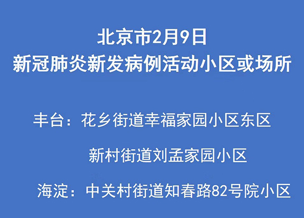 2月9日北京新冠肺炎新發病例活動小區或場所圖示
