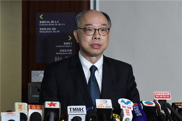 林鄭月娥聯同食物及衛生局長陳肇始,和運輸及房屋局長陳帆,在行政會議前見傳媒。