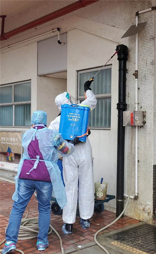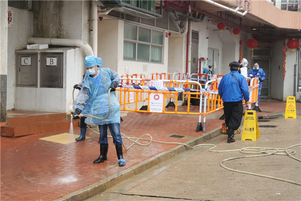房署派員消毒康美樓 清潔工穿保護衣擦洗地磚
