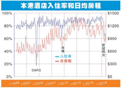 本港的酒店入住率一向不錯,近十餘年大多日子都在八成以上,甚至通常達九成。九成其實是「很爆」的了,外國不少地方即使大城市,「吉房」也甚少得一成這麼緊張。重溫SARS時的兩個最慘月份,入住率低至兩成。最新數據截至去年12月,疫情未發,入住率低至近六成,比得上金融海嘯谷底。跟當年不同的是,昔日插水不會持續多月。