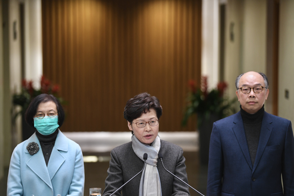 林鄭月娥昨早於行政會議前見傳媒表示,政府對康美樓傳染個案高度重視、嚴陣以待。 中通社