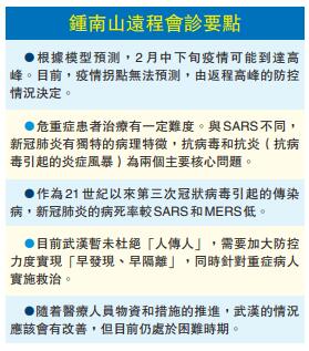 鍾南山表示,做出上述預測是基於現有的數學模型,近期的疫情情況,以及政府所采取的措施。
