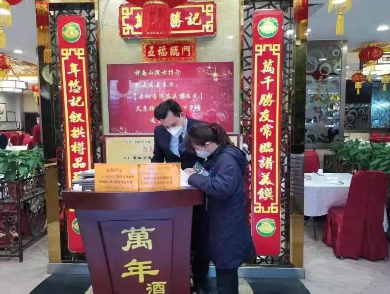 同時,記者從越秀區市場監管局了解到,要求所有餐飲服務提供者暫停大廳、堂食服務,禁止在疫情防控解除前接待婚宴、壽宴等大規模聚餐活動。越秀區市場監管局持續開展餐飲服務單位全覆蓋檢查,督促餐飲單位嚴格落實食品原料進貨查驗記錄製度,嚴禁經營、貯存野生動物及其製品,嚴禁採購、現場飼養和宰殺活禽。要求餐飲店落實從業人員和進店消費者測體溫、戴口罩等各項防控措施,可以登記顧客姓名和聯繫方式以便可追溯。截至2月10日共派發《致越秀區餐飲單位的一封信》3000餘份,督促落實從業人員測體溫、戴口罩1.4萬人次,落實顧客測量體溫3.7萬人次。與此同時,禁止餐飲服務提供者為年例、美食節、農村集體聚餐等聚集性餐飲活動提供服務或外出承接上述服務。指導酒店茶樓等大型餐飲服務單位縮小營業面積、擴大餐桌間隔,限制就餐人數,全力防控因人員聚集可能帶來的風險。截至2月10日共勸停聚餐或宴席5宗,1169圍,涉及1.4萬餘人。