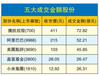 重磅股亦見回勇,藍籌股友邦保險(1299)及控(005)各升1.5%及1.19%。騰訊(700)盤中突破413元52周高位,最多升1.12%,收市報411元,升幅回至0.49%。阿里巴巴(9988)即將公布第三季季績,全日反覆升1.32%,收215元。美團點評(3690)收報103元,亦揚升3.83%。