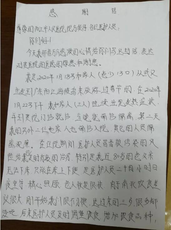 「十分感謝你們在全國抗擊疫情的關鍵時刻,向我們身處陽江市的湖北籍遊客伸出了援助之手,付出了關愛之心,在此向你們表示誠摯的感謝!」 遊客們表示,待疫情結束後,要再次回到海陵島,感受還沒來得及欣賞的風光。