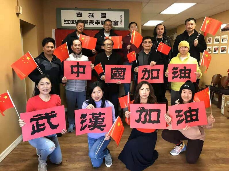 西雅圖江門五邑青年聯合會成員們為中國加油,為武漢加油