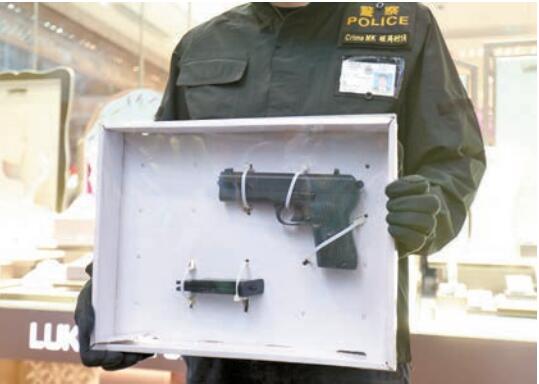 【香港商報网訊】記者馮仁樂報道:旺角發生珠寶金行劫案。1名戴帽和口罩獨行賊人手持懷疑天拿水及疑似手槍,闖進亞皆老街1間珠寶金行,淋潑液體後擎槍指嚇職員,掠去一批金飾後逃去。醒目職員相信賊人手持的是假槍,3人追出將賊人按落地上,爆發激烈糾纏,期間1名休班警員路經,見狀合力將賊人拘捕,起回約100萬元金飾。警方事後證實,涉案手槍果然為氣槍,譴責不法之徒利用疫情全民戴口罩作掩飾犯案。