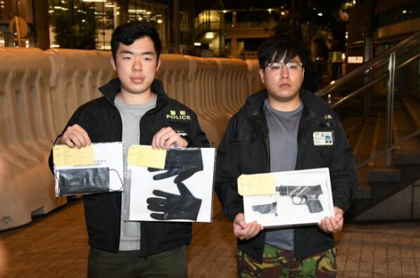 灣仔警區刑事部陳孟豪署理總督察表示,至昨晚11時許,灣仔特遺隊警員巡邏期間,目睹被通緝男子在街頭出現,警員尾隨跟蹤疑人,其後採取拘捕行動,結果在男子身上搜出一支黑色汽槍,一併帶署扣留調查,被捕男子相信與加油站劫案有關。